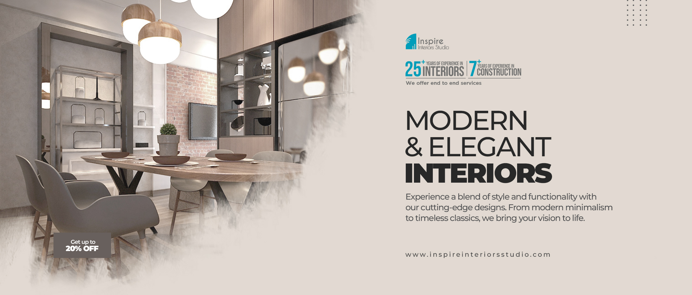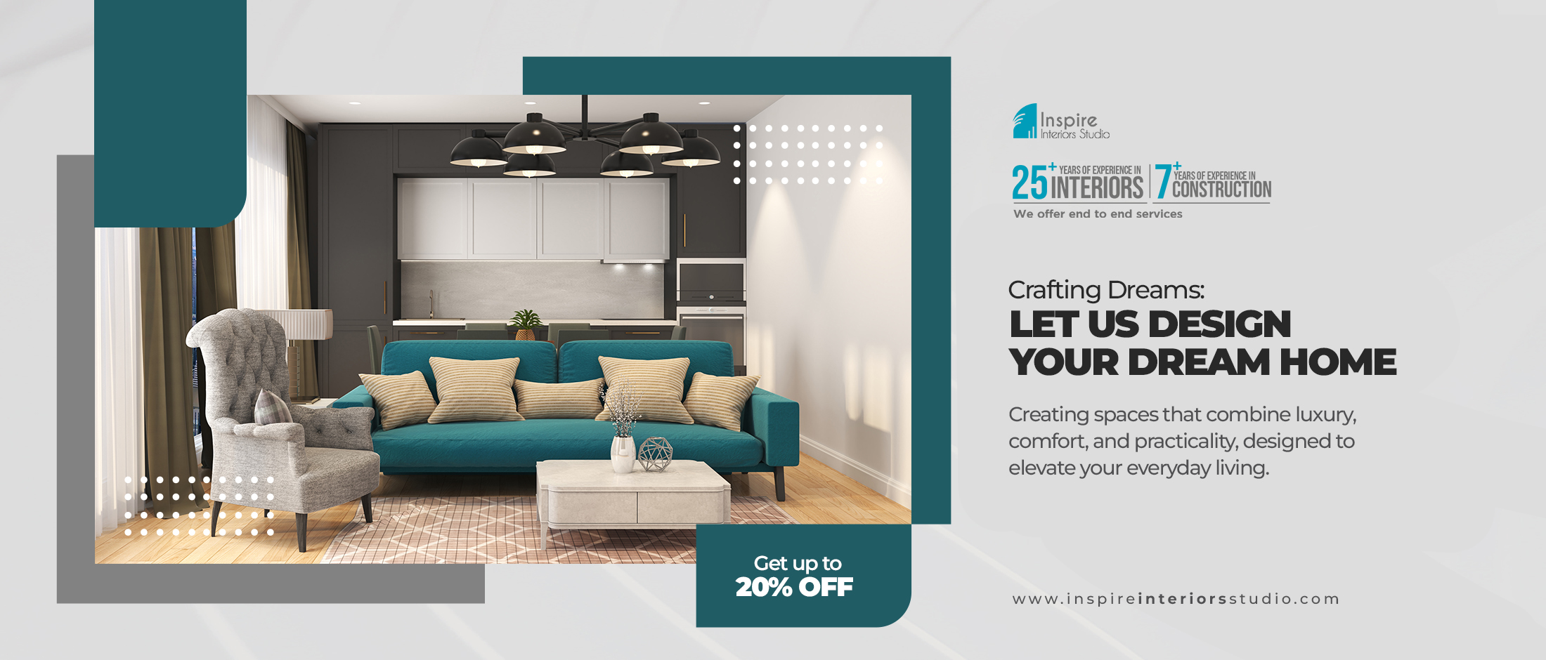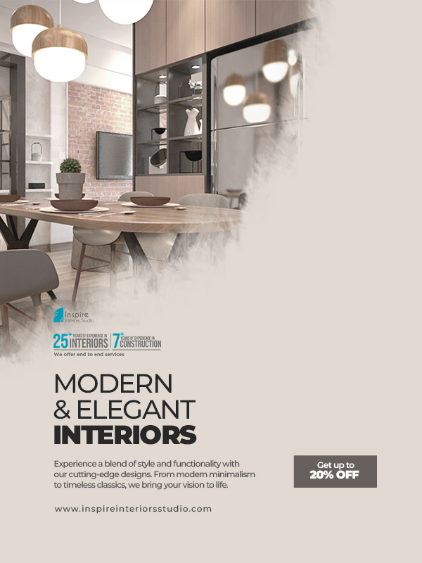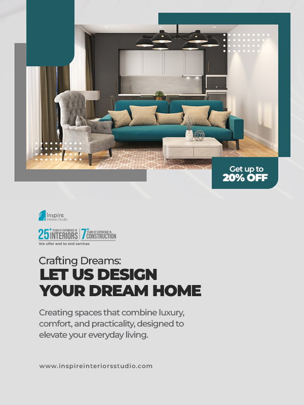 At Inspire Interiors Studio, we offer expert consultancy services to bring your design vision to life with precision and creativity. Plus, enjoy an assured discount of 15% to 20% on genuine quotes*—making quality interiors more affordable than ever. *Conditions apply.